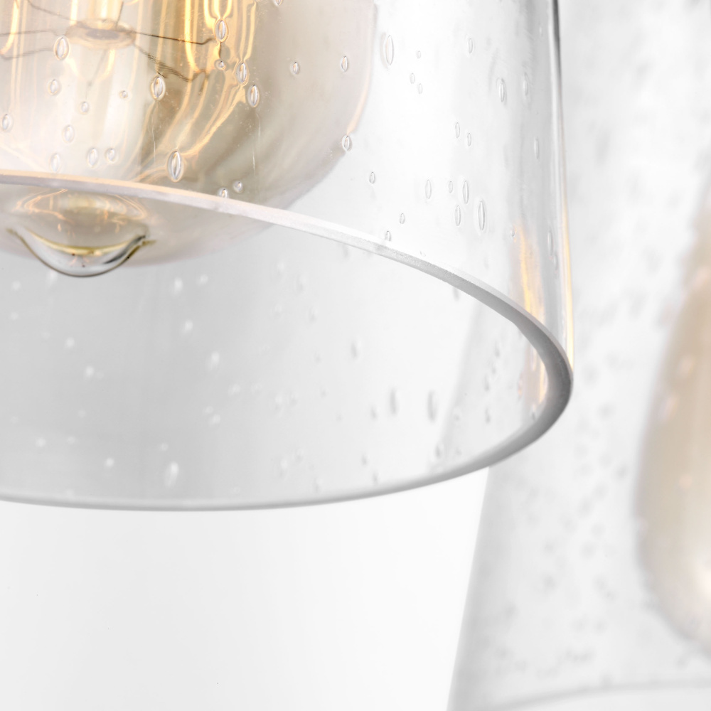 Modern details, like the clean square supports of the cross arm and sleek, rectangular backplate, are defining features of the Mercer. Available in five modern finishes and thickened seeded glass shades, this Mercer vanity lights create a delicately gorgeous effect by illuminating your space with a subtle glow.