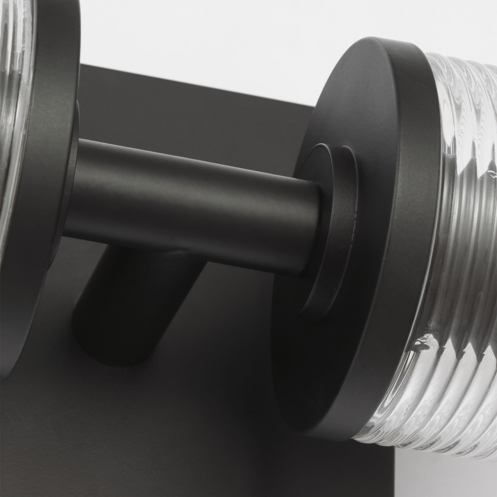 Crafted with Steel in a Midnight Black finish with clear ribbed glass shades