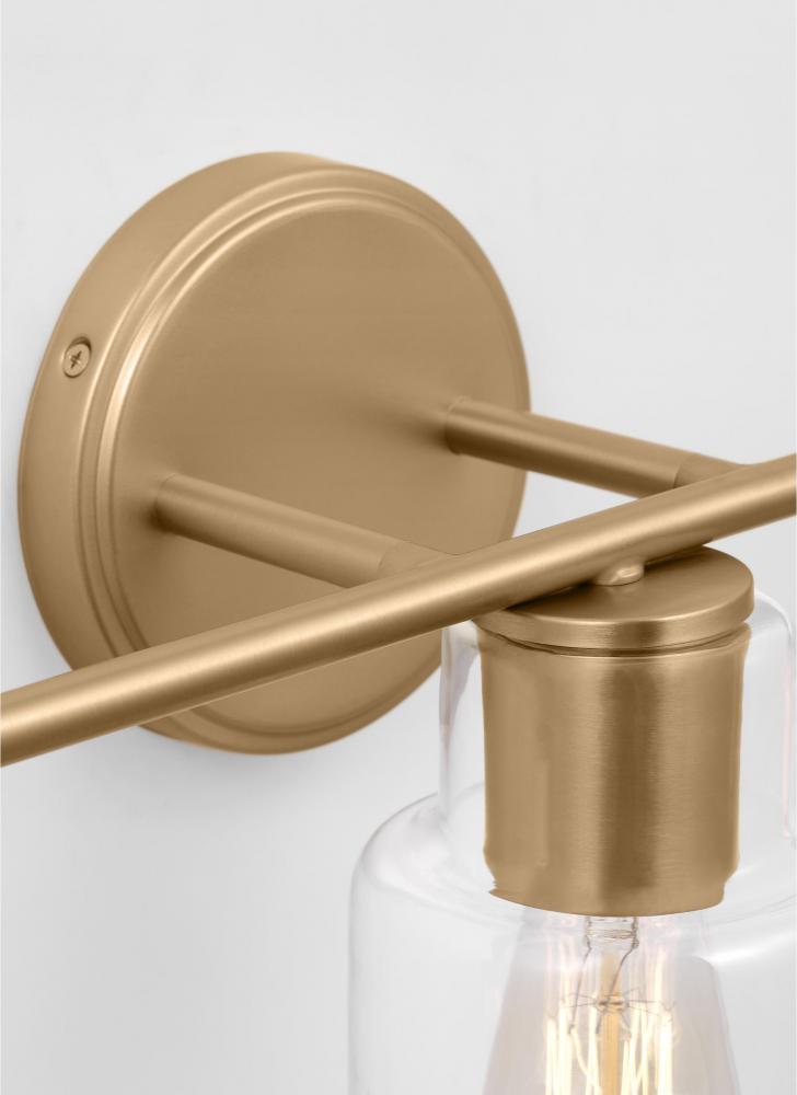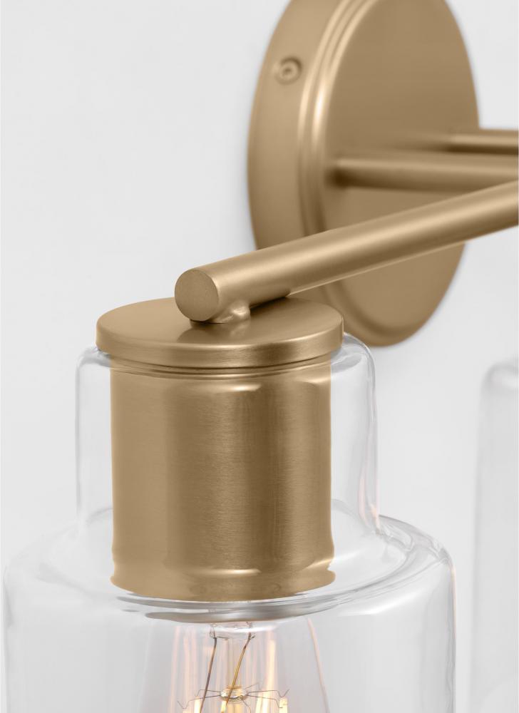 Add a bright burst of light where you need it most with the classic Drew & Jonathan Sayward Three Light Wall / Bath Sconce, featuring a round metal backplate and clear glass shades. Made to coordinate across a broader range of bath hardware and design styles, the Sayward is available in four popular finishes, Brushed Steel, Chrome, Midnight Black, and Satin Brass. This light looks great on its own or installed above a bathroom vanity, and the glass shades make it ideal for filament bulbs. This fixture may be mounted in the up or down position, and is cETL listed for damp locations, making it the perfect lighting solution for any space.