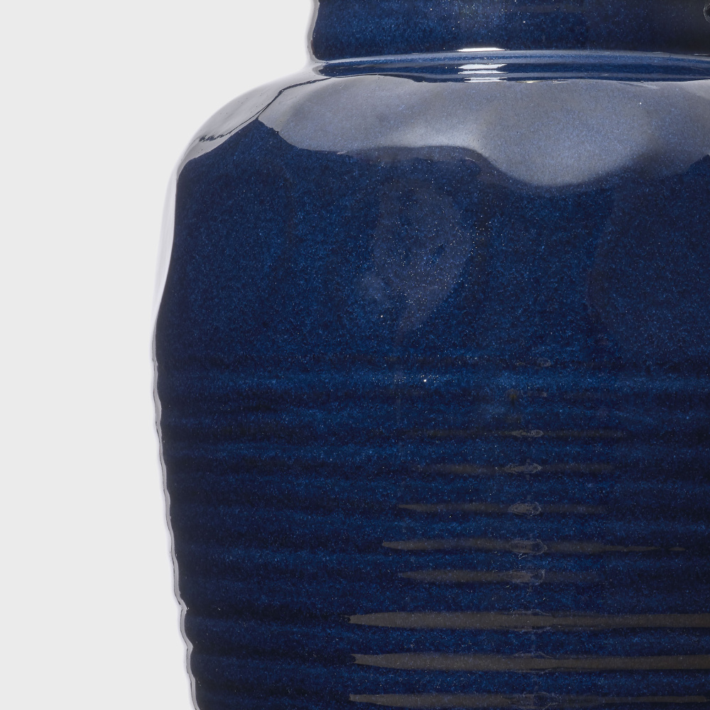 Features a canister jar silhouette enhanced with subtle ribs and round impressions, creating depth and tactile appeal.