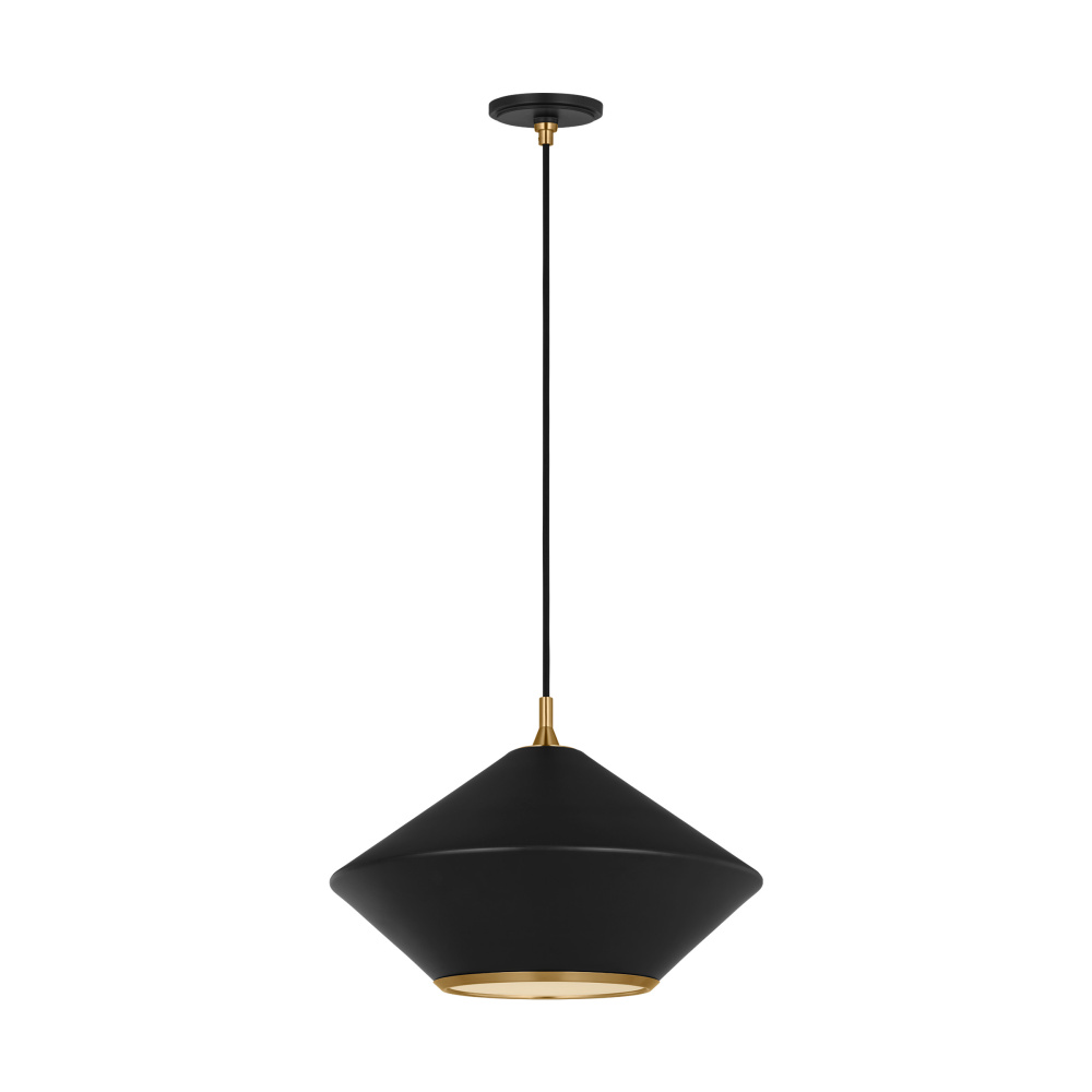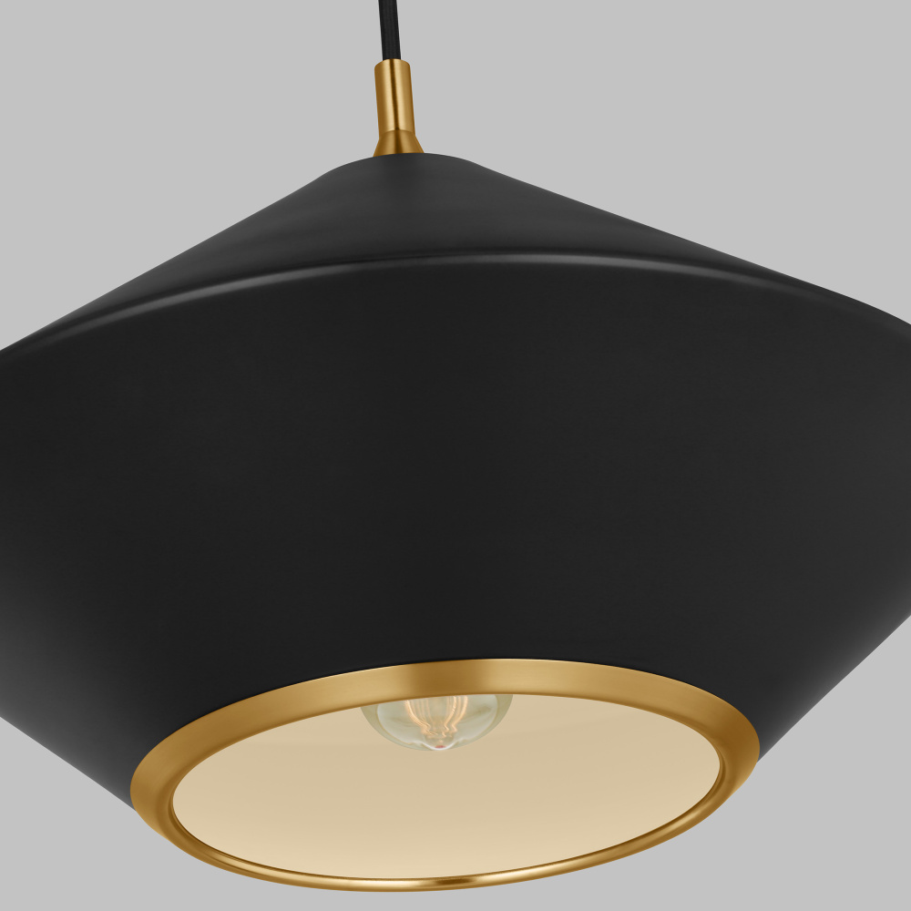 Inspired by mid-century modern designs, the Stanza series is a group of new cone-shaped pendants in light and dark silhouettes with chic accents in brass – trimming them at the top and bottom. Its carefully minimal design brings your eye to the trim, where its burnished Brass finish provides exciting contrast. A matching holder ties it all together. Stanza is a charming pendant series that will bring a touch of retro-modern style to any space.