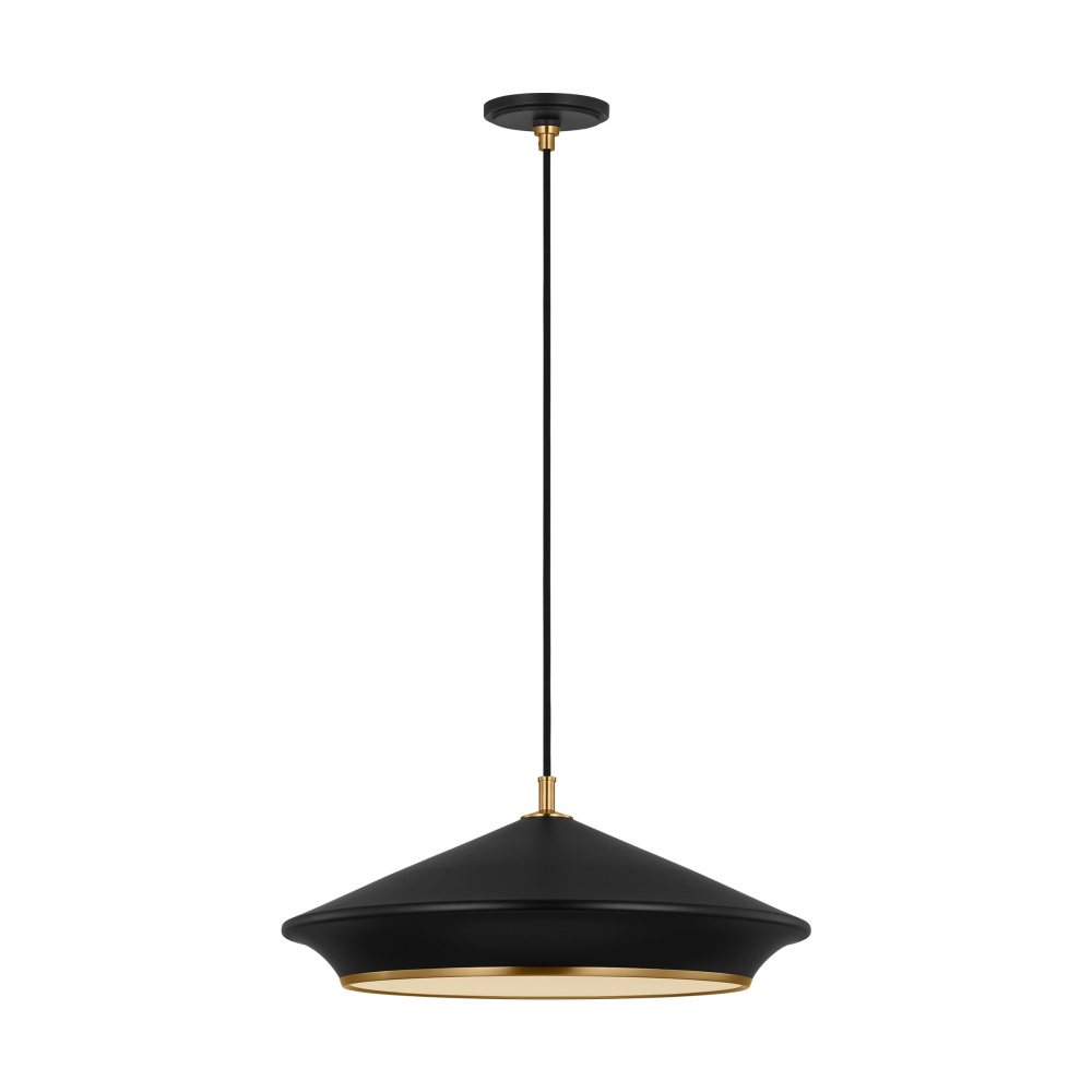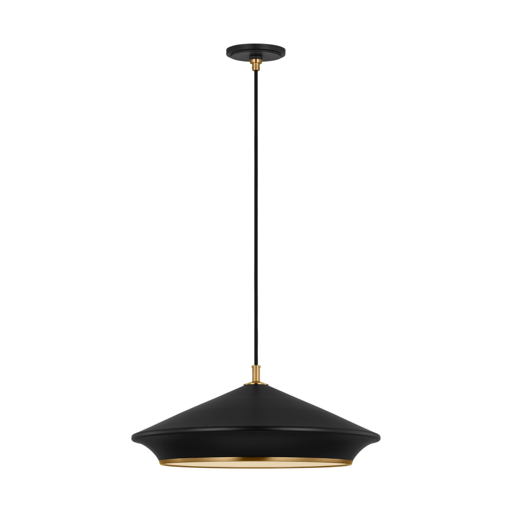 Inspired by mid-century modern designs, the Stanza series is a group of new cone-shaped pendants in light and dark silhouettes with chic accents in brass – trimming them at the top and bottom. Its carefully minimal design brings your eye to the trim, where its burnished Brass finish provides exciting contrast. A matching holder ties it all together. Stanza is a charming pendant series that will bring a touch of retro-modern style to any space.