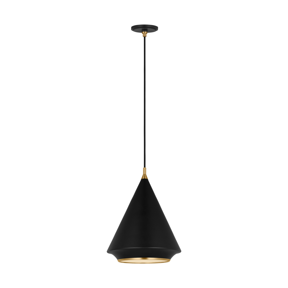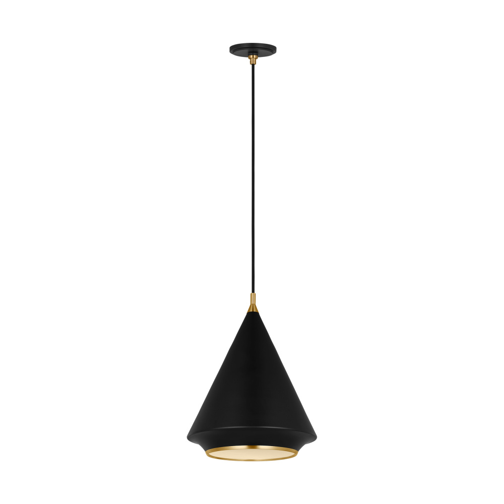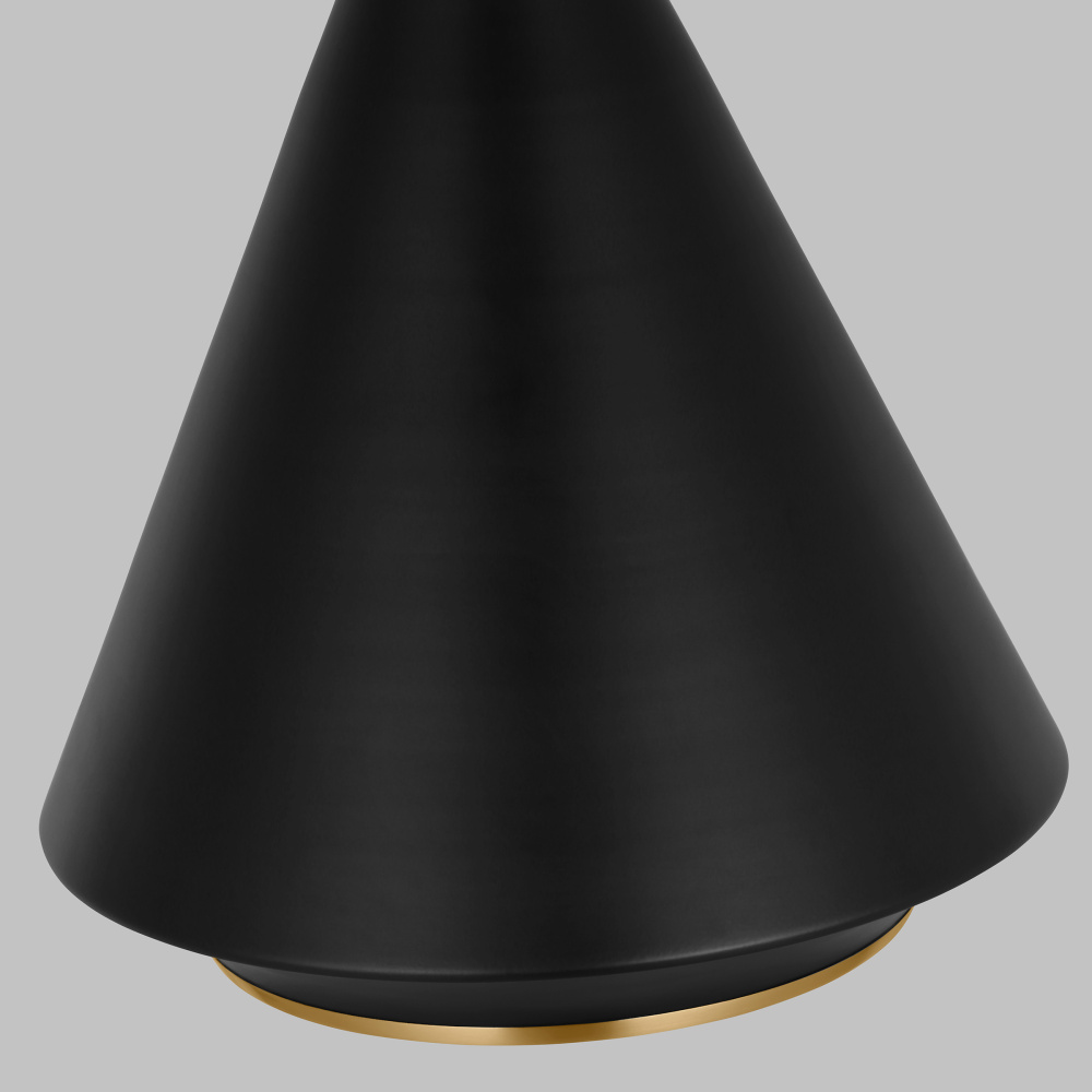 Inspired by mid-century modern designs, the Stanza series is a group of new cone-shaped pendants in light and dark silhouettes with chic accents in brass – trimming them at the top and bottom. Its carefully minimal design brings your eye to the trim, where its burnished Brass finish provides exciting contrast. A matching holder ties it all together. Stanza is a charming pendant series that will bring a touch of retro-modern style to any space.
