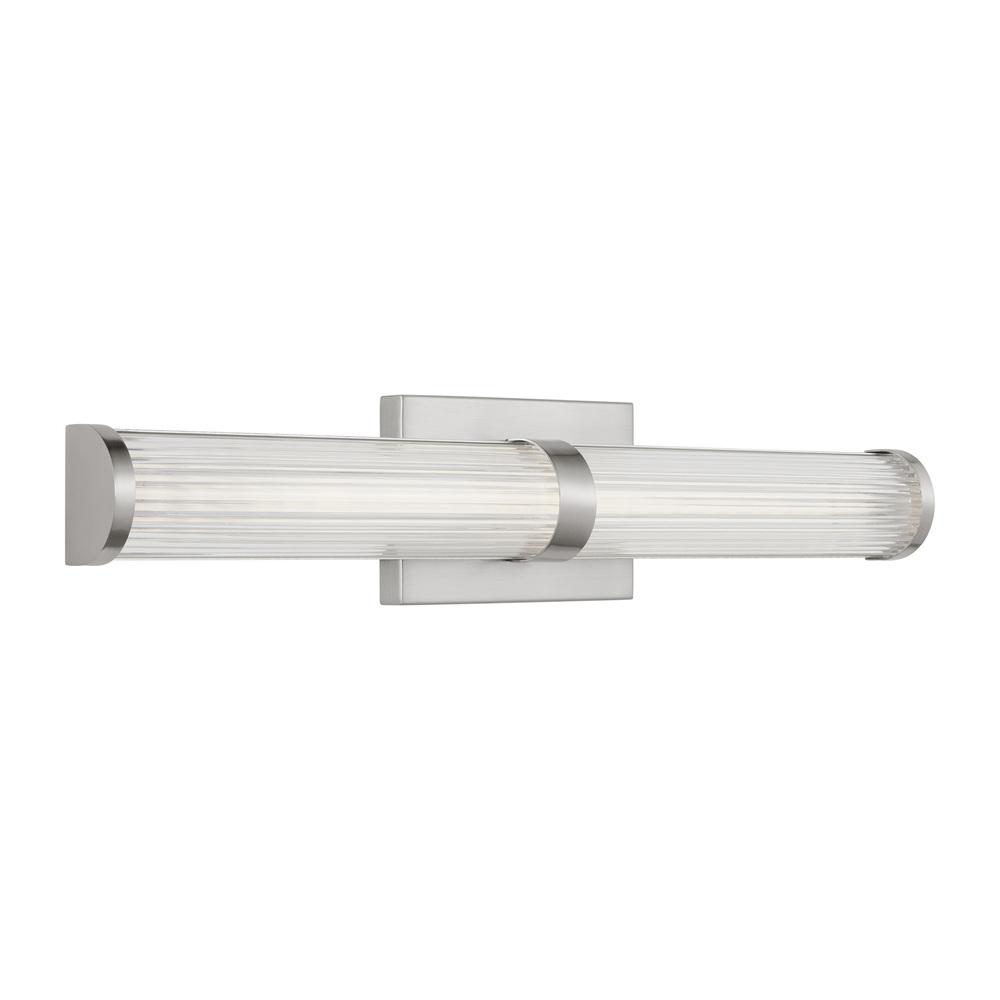 Syden is crafted of steel with clean-lined backplate and ridged glass shade. This understated detailing makes for a versatile design, at home in either modern, transitional or traditional interiors. Syden can be mounted horizontal or vertical.