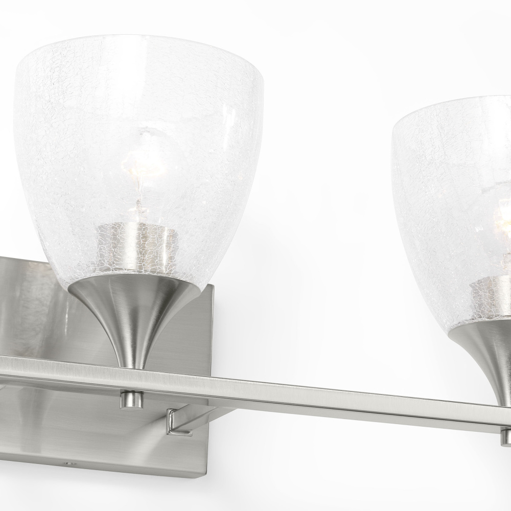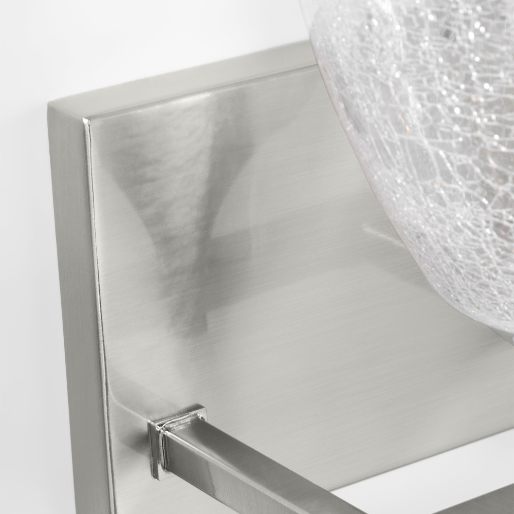 Crafted with Steel in a Brushed Nickel finish with clear crackle glass shades