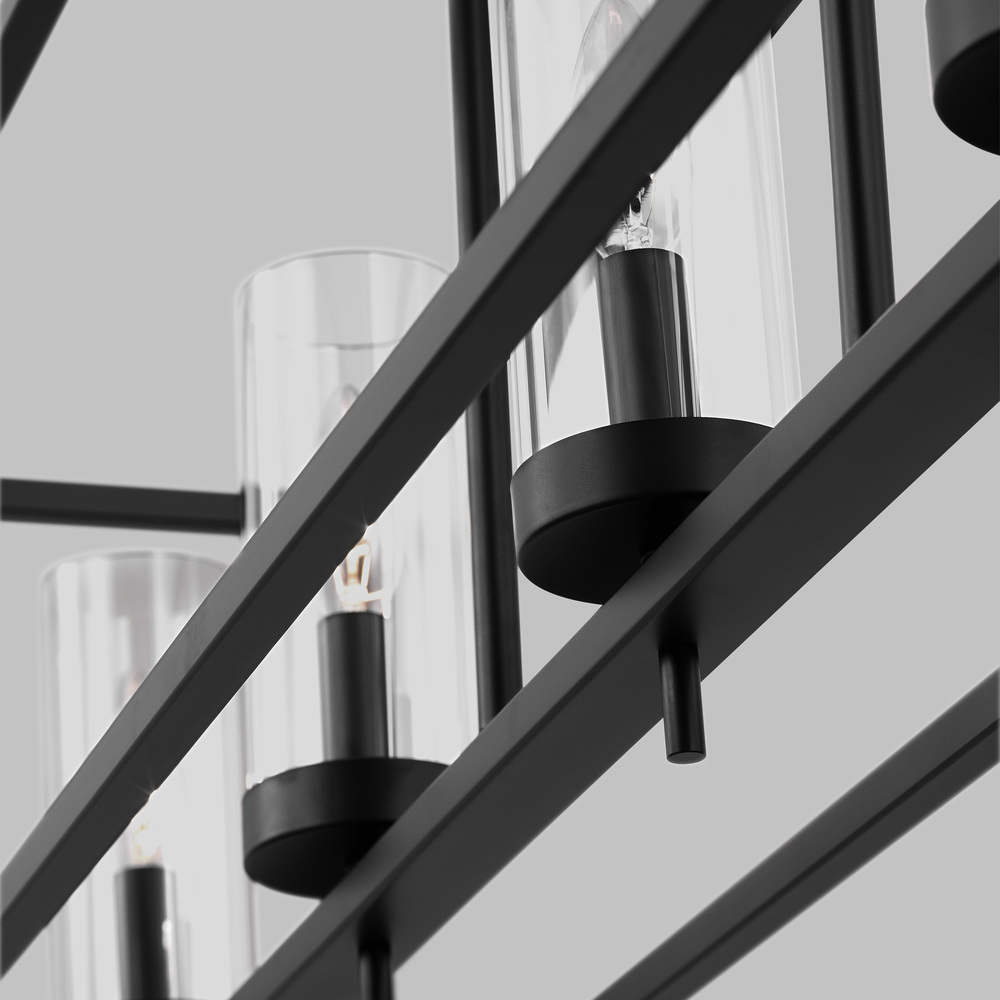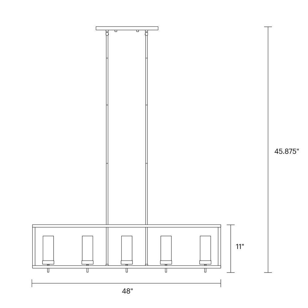 The Zire five light single tier chandelier in Midnight Black uses LED bulbs to save you both time and money. Zire embodies simple clean lines in three finishes that strike a perfect balance of elegant yet minimalist design. Each of the lights sits on the round bottom rim, featuring an Edison-inspired design highlighted by a cylindrical glass shade. The assortment includes nine-light, five-light, and three-light chandeliers, a five light linear, one-light mini-pendant and one-light, two-light, three-light and four-light wall/bath fixtures. A stylish and elegant addition to any room in the house. Zire is offered in a Brushed Oil Rubbed Bronze, Brushed Nickel, Chrome, Satin Brass or Midnight Black finish.